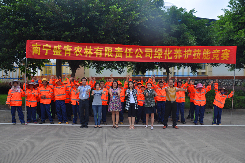 7月15日上午9时许,南宁江南区同兴路两旁阳光热辣,机器的轰鸣声此起彼伏,70多名身着橘黄色衣服的绿化养护工人上下忙得汗流浃背:这里正在举行盛青公司首届绿化养护技能竞赛。