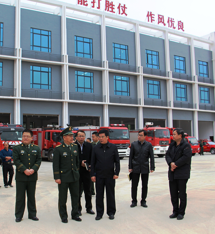 2月23日上午,南宁市消防支队支队长邓锡中在经开区党工委书记、管委会主任何尚汉、经开区消防大队大队长詹宁、星空官方网页版-星空(中国) 董事长杨东等领导的陪同下到星空官方网页版-星空(中国) 承建的吴圩空港新城消防站开展调研。