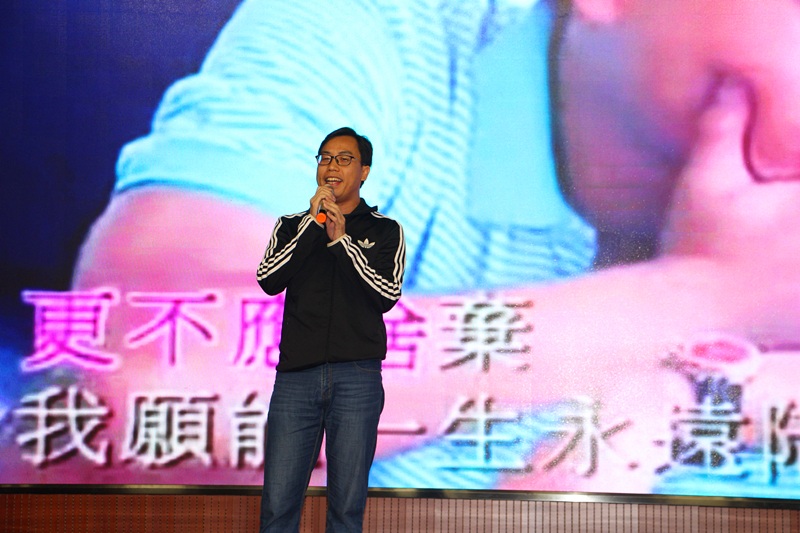 集团领导班子成员、总经理助理上台演唱《心会跟爱一起走》