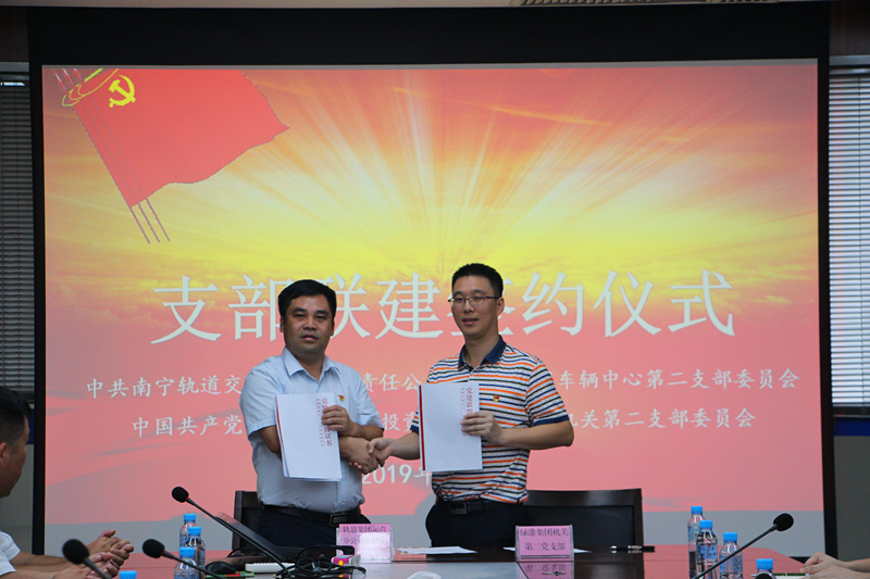 最后,南宁轨道交通集团有限公司运营分公司车辆中心第二党支部与星空官方网页版-星空(中国) 机关二支部进行党建联盟签约仪式,并授予了“南宁地铁党建联盟”牌匾。通过党组织的结对共建,结对双方将努力实现“资源共享、优势互补、互利共赢”的目标,充分发挥同盟的综合效应,丰富基层党建内涵,促进支部党建工作水平再上新台阶。