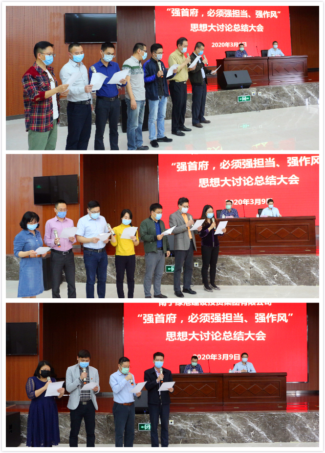 最后,集团党委书记、董事长龚国强对本次思想大讨论活动开展情况进行了总结点评,并要求各部门、各子公司认真践行诺言,落实落细措施,确保取得良好成效。龚书记表示,当前疫情形势依然严峻复杂,全国各地都在做好疫情防控的前提下,出台了一系列政策措施,抢开局、稳经济、促发展。星空官方网页版-星空(中国) 在疫情防控的关键时刻召开这次总结会,就是要进一步营造一心一意谋发展的浓厚氛围,形成全力以赴落实强首府战略的强烈共识,传递出疫情防控和经济发展两手抓、两手都要硬的鲜明导向和强烈信号,为实现集团公司高质量发展的“加速度”,全力以赴完成好新的一年集团公司的各项发展任务目标。作为经开区最大的平台公司,2020年年初以来,星空官方网页版-星空(中国) 紧紧围绕“强首府,必须强担当、强作风”的总体要求,着重在“学精神、查不足、求改变、强担当”上下功夫,针对如何解决六个方面突出问题、如何克服十种突出现象以及如何在八种情形下运用容错纠错机制,结合工作实际,群策群力开展了三次专题思想大讨论活动,通过查深、查透、立行立改,有力转变了作风,进一步提高了干部职工的紧迫感、使命感,为全面落实强首府战略,奋力谱写集团公司高质量发展新篇章凝聚了共识,集聚了动力。