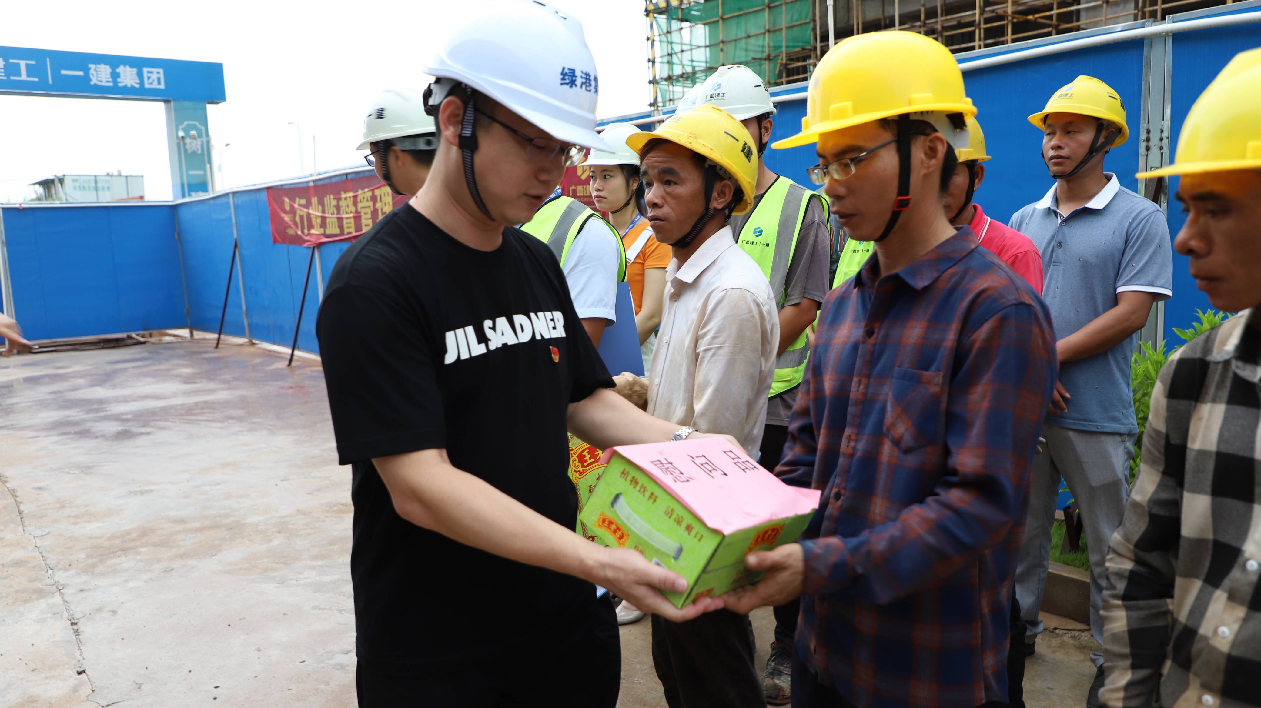 集团党委书记、董事长龚国强为工地的一线职工送上清凉慰问品