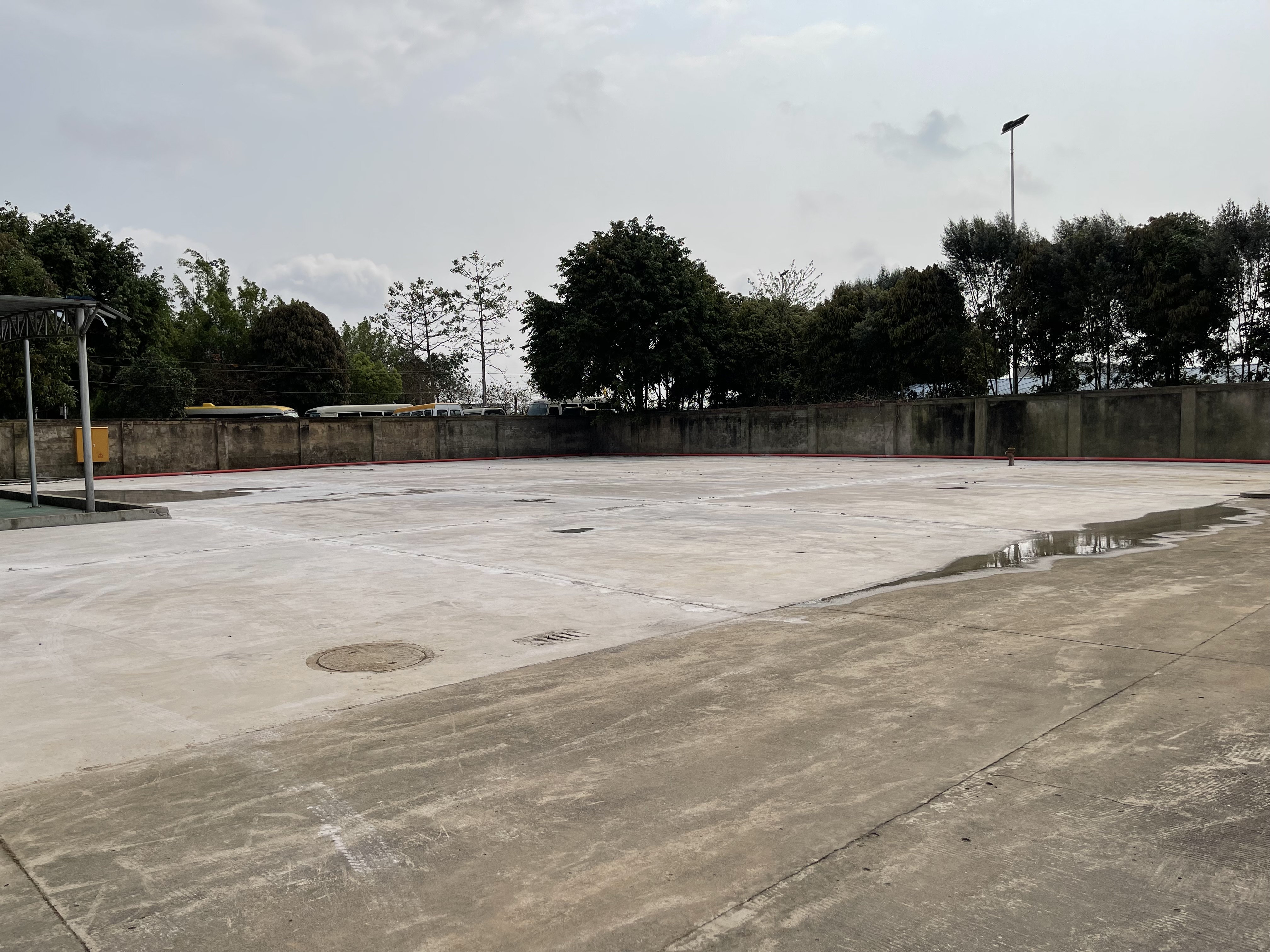 19日凌晨1时17分,最后一车混凝土浇筑完成,车辆和检疫消杀设备放置处完成施工,联检楼及大院改造工程基础工程基本完成!