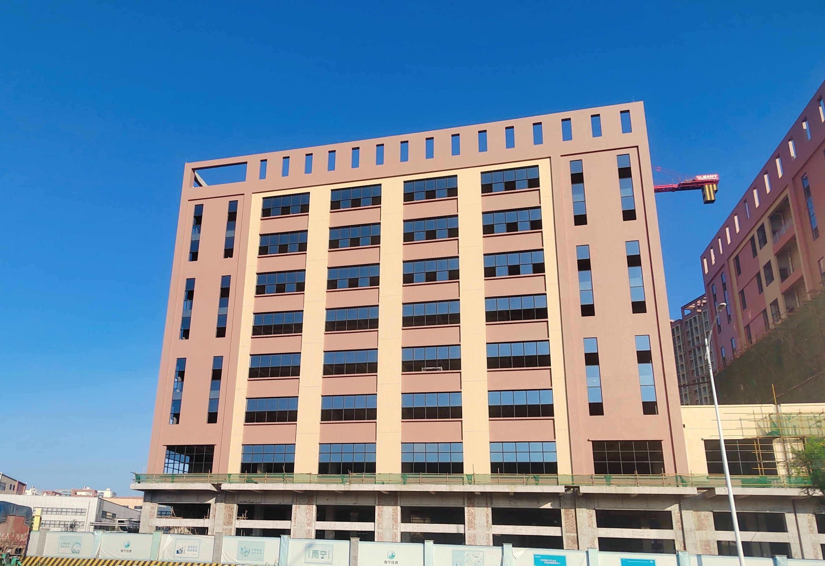 神冠胶原智库项目加工厂房23位于南宁国凯大道东13号,项目合同金额5441.63万元,总建筑面积约3.6万㎡,建筑高度38.95m,建筑层数地上8层,地下1层,结构形式为框架结构。其中桩基工程采用预应力管桩进行静力压桩施工。项目于2023年5月7日开工建设,并于2024年5月8日完成主体验收。