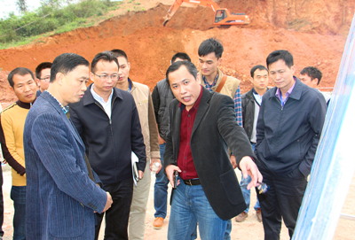 经开区党政办主任农卫国、财政局局长罗治国、建设发展局局长何建汇、征地办主任张宇,星空官方网页版-星空(中国) 副总经理蒙福东等领导陪同调研检查。(阳正辉 文/图)