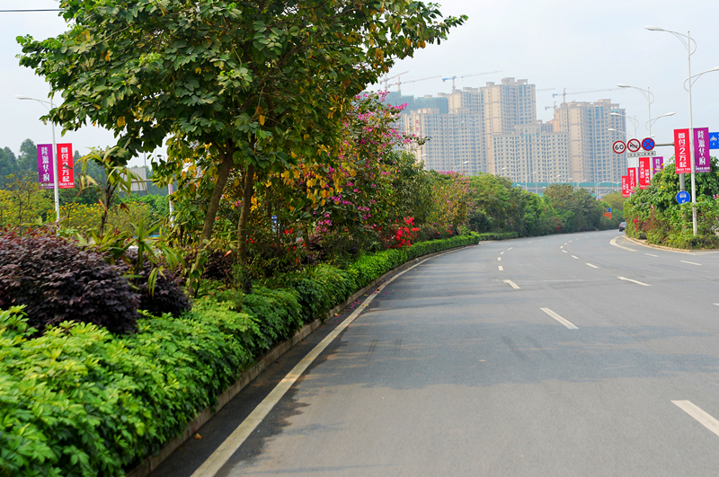 道路呈南北走向,起点与金凯路相交,终点接高岭路交叉口边缘,设计总长1542.39米,宽度40米。项目建设内容:清理整治现状旧水泥砼路面,对设计范围内的管线井进行加高围护等改造,然后在处治合格后的水泥砼路面上加铺沥青砼罩面层,并布设交通标线。工程总造价为1279万,施工单位为广西建工集团第三建筑工程有限公司,监理单位为广西建科工程监理有限责任公司,项目于2015年月7月进场施工,2015年10底全部完工并进行初步验收工作。