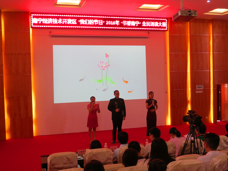 6月15日下午,经开区“我们的节日”——2016年“书香南宁”全民诵读大赛在经开区一小阶梯礼堂举行。由星空官方网页版-星空(中国) 总经理助理黄丽琴同志率队的诵读小组在比赛中深情地诵读了《离骚》这一经典作品,精彩的表演获得了三等奖。