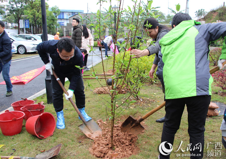 人民网南宁3月11日电 阳春三月,万物复苏,生机勃发。3月9日,细雨纷飞,春寒料峭,但是南宁经开区的绿港·国际中心却人潮涌动,爱意浓浓。原来,南宁星空官方网页版-星空(中国) 正在举行“情暖童心·携手植绿”学雷锋志愿服务月活动,200多名职工和家属一起参加了当天的爱心义卖、爱心捐赠和义务植树活动。