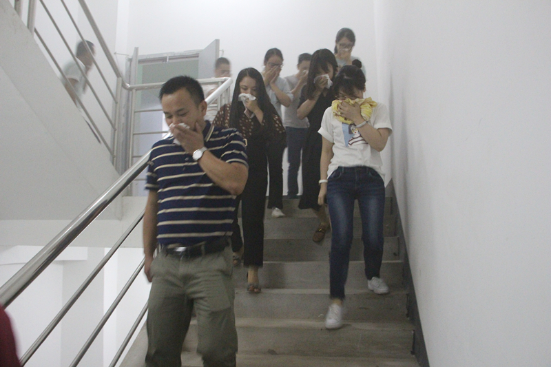 当天下午15:00,随着模拟烟雾的放出,模拟火灾警报拉响,各参加火灾疏散演习的人员按照既定的撤离路线,在工作人员的指挥下迅速撤离“事故”现场,撤离过程中大家纷纷用湿毛巾捂住自己的口鼻,弓着腰沿着墙壁迅速撤离到一楼安全地点,整个撤离过程不到2分钟。经过周密的部署和安排,疏散演示实现了安全、有序、及时撤离的预期目标。消防培训老师对演练效果给予充分肯定,并围绕消防安全“四个能力”、“四懂四会”为大家讲解了消防知识,详细介绍了如何扑灭初期火灾及一些注意事项,并重点讲解了在办公人员密集的场所发生火灾时如何逃生的知识。
