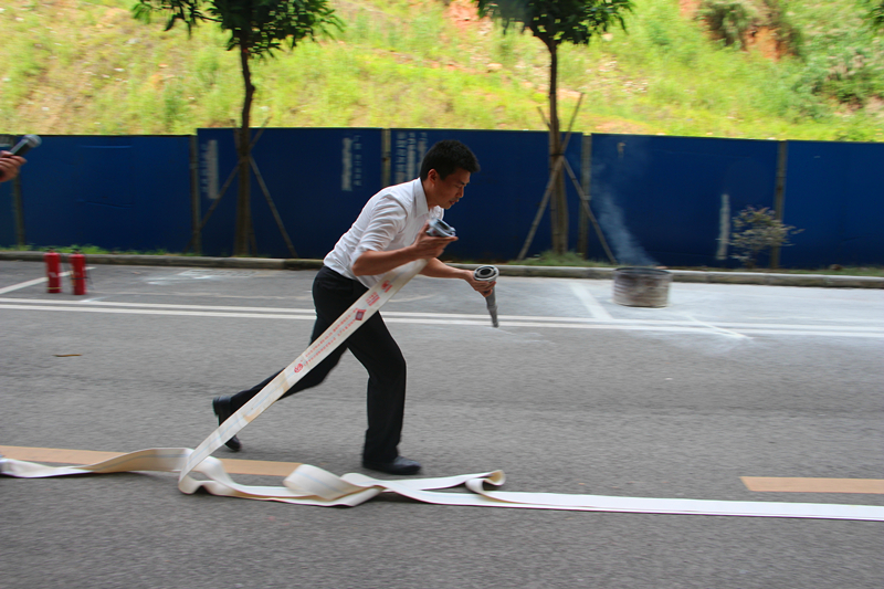 在疏散演习结束后,培训现场还进行了灭火器使用实操演练活动。培训老师从干粉灭火器、消防水带的灭火原理、使用方法和注意事项为大家进行介绍,示范了动作要领,传授灭火四步骤“一提二拉三压四喷”的要点。在消防培训老师的指导下,部分员工还轮流实操演练了灭火器扑火技巧,培训效果明显。