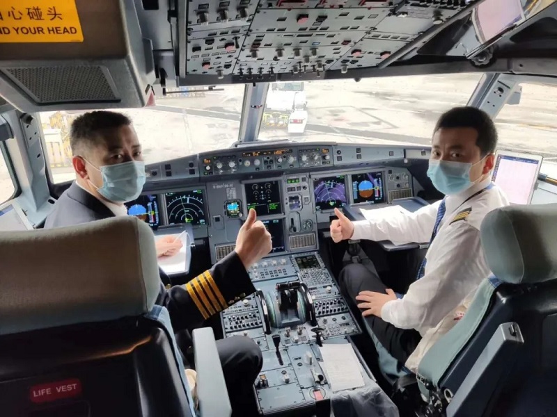 医疗队员和飞机乘务人员合影留念。