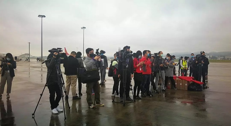 媒体早早到来南宁吴圩机场,静候英雄凯旋。