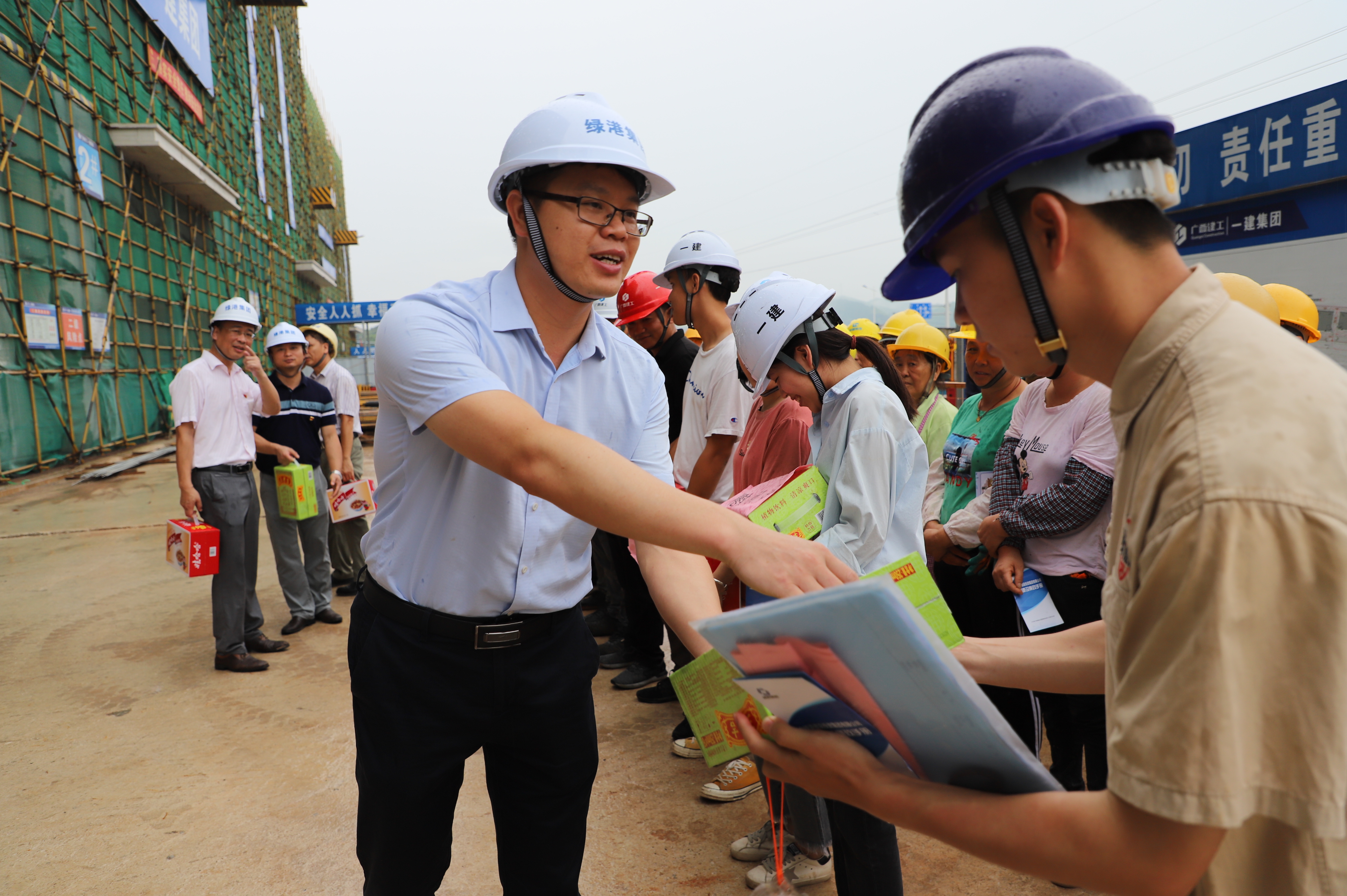 集团党委书记、董事长龚国强为工地的一线职工送上清凉慰问品